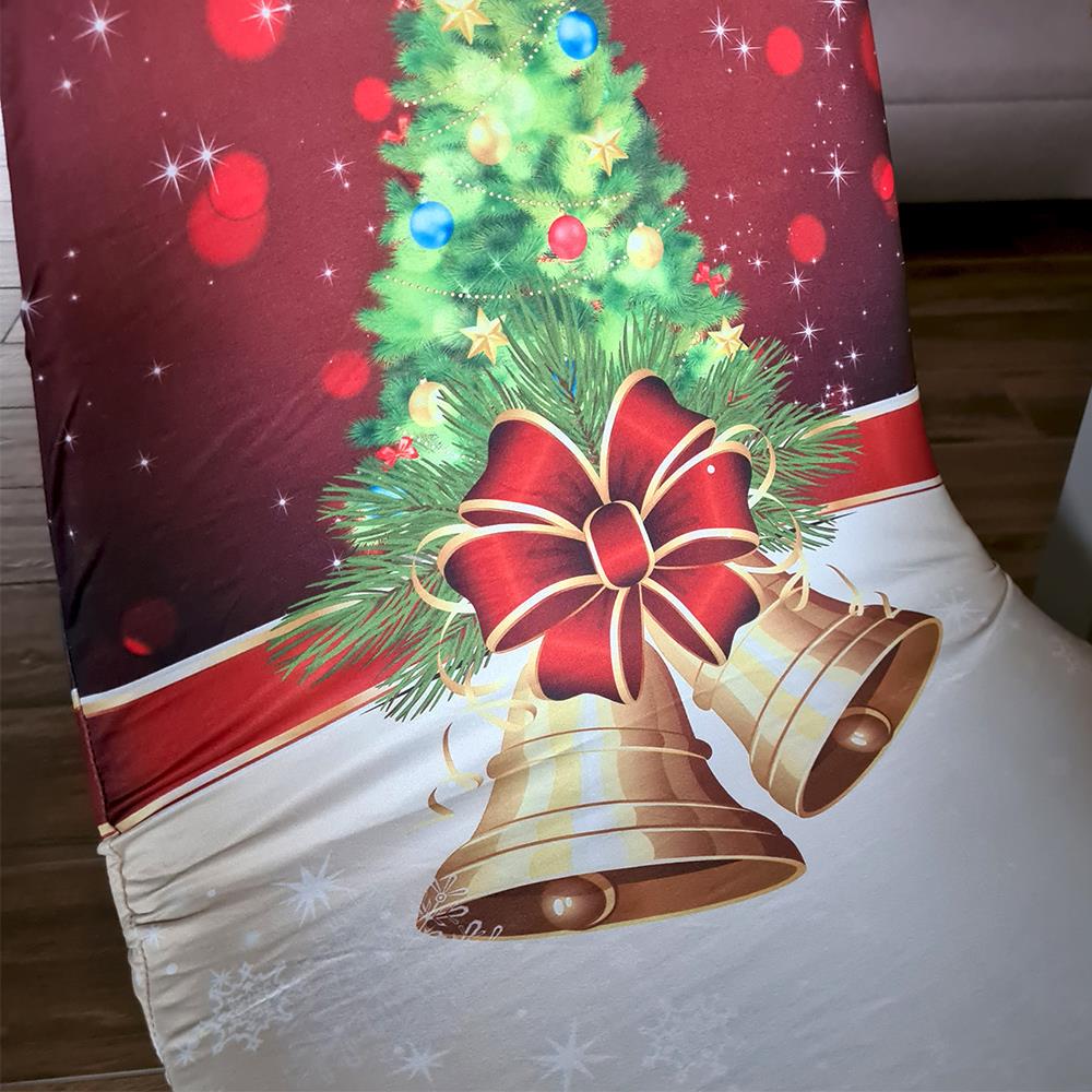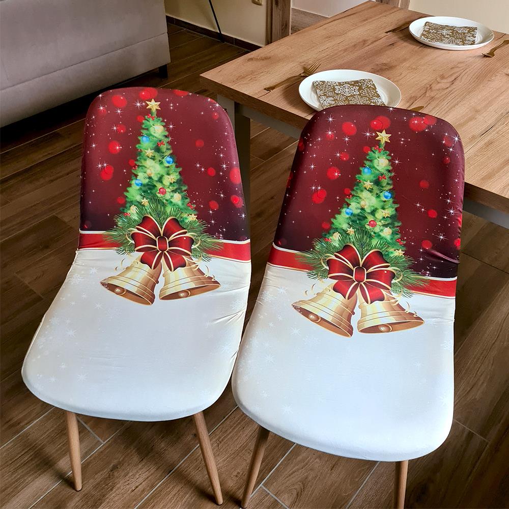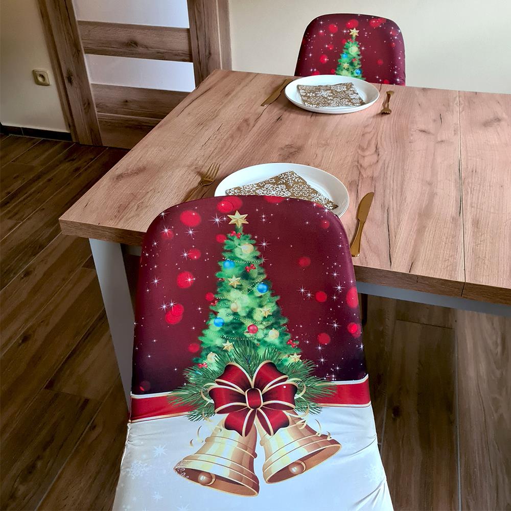 Potah na židli s vánočním motivem - stromeček se zvonečky