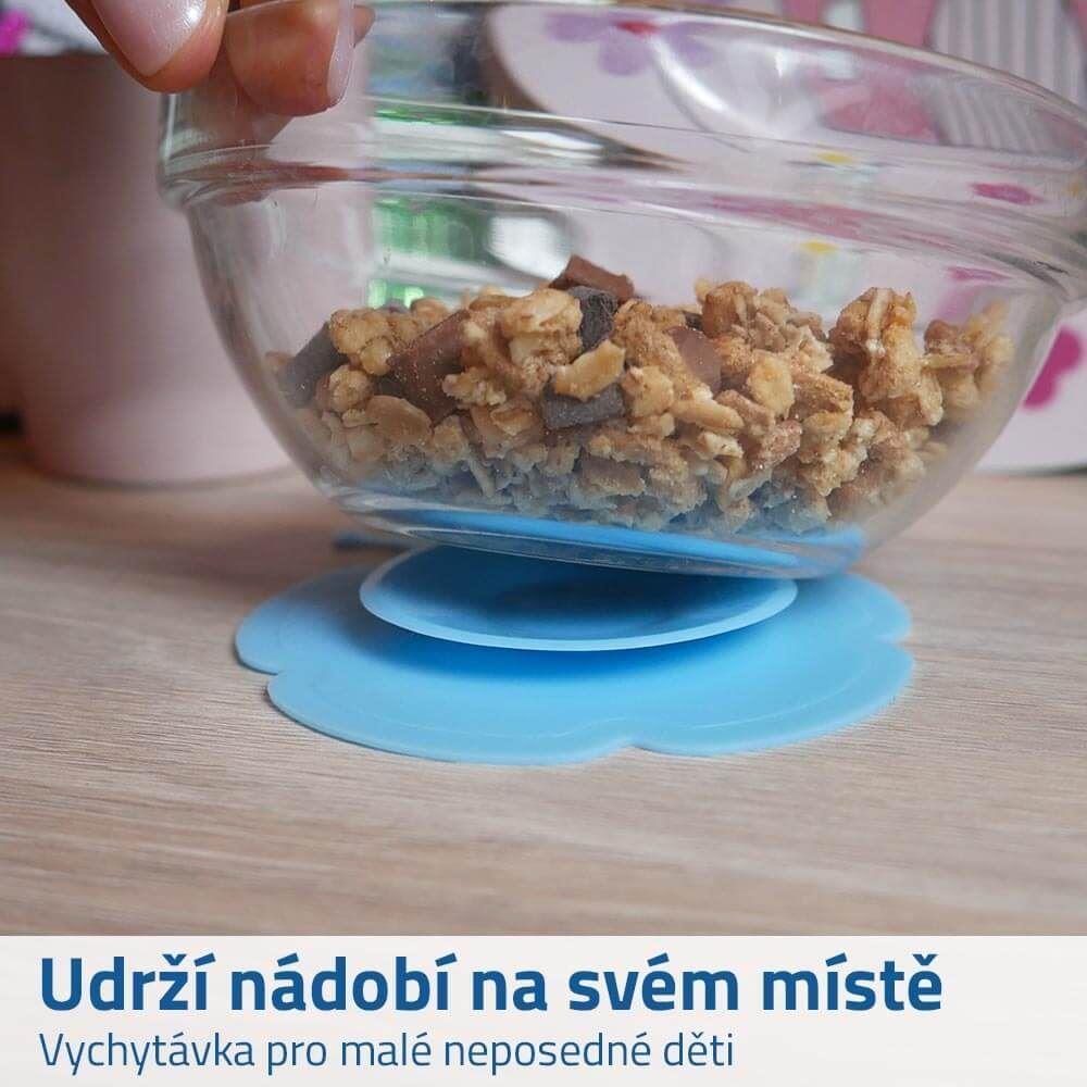 Díky přísavce udrží talíř, misku či hrneček na svém místě. Podložka je skladná, můžete si jí pohodlně vzít i sebou na cesty. Údržba je jednoduchá, stačí otřít hadříkem nebo omýt vodou s běžnými mycími prostředky.