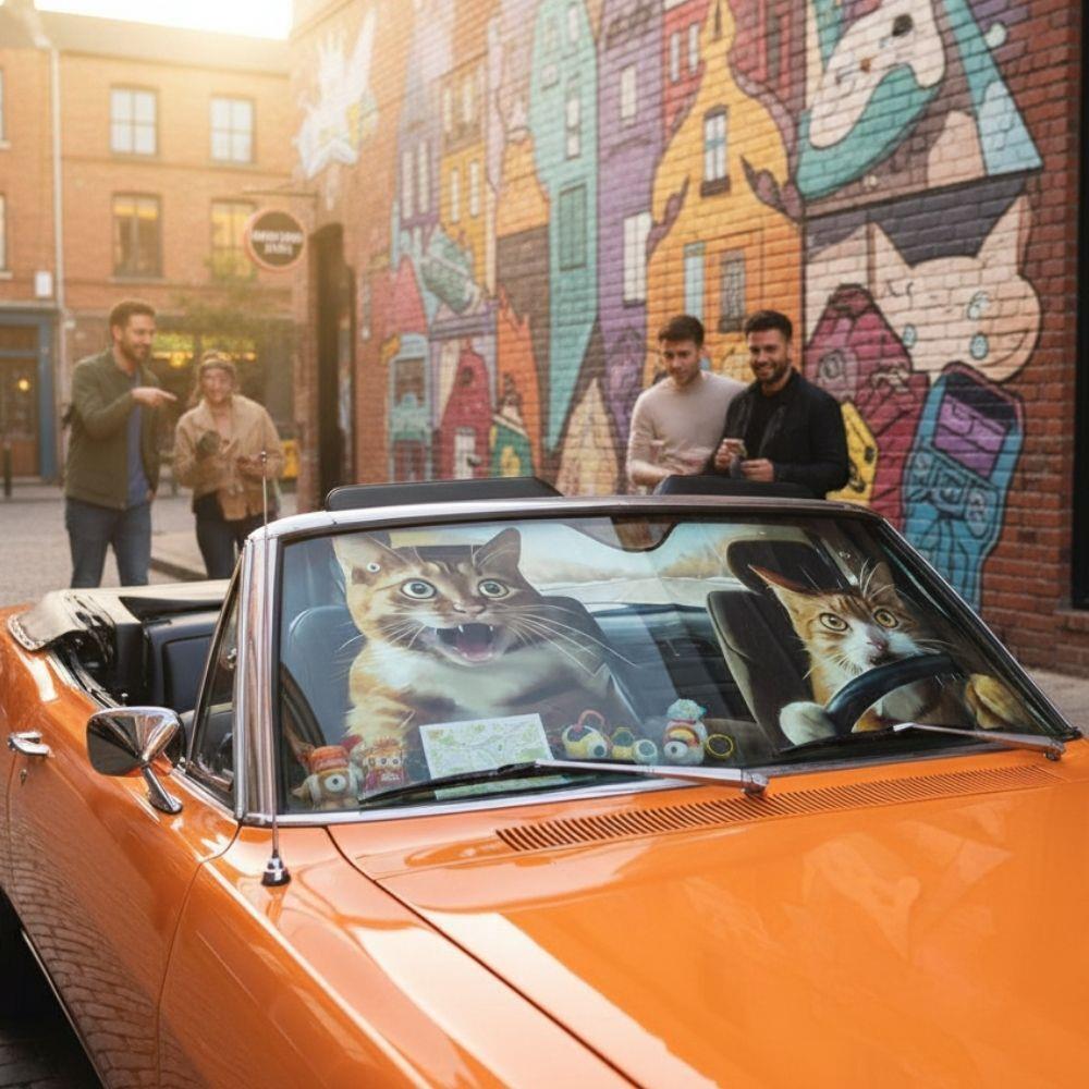 • 1x protisluneční clona na přední sklo auta s vtipným motivem