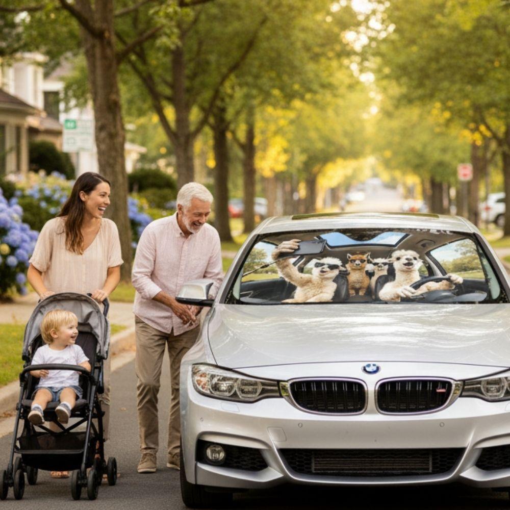 • 1x protisluneční clona na přední sklo auta s vtipným motivem