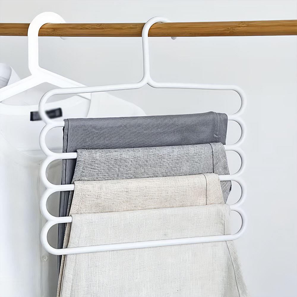 Úspora místa ve skříni, a k tomu lepší přehlednost mezi kalhotami – to vše zvládne ramínko na kalhoty, které dokáže pobrat celkem až 5 kalhot. Na ramínko lze zavěsit klidně i sukně nebo kraťasy. Ramínko má klasický háček se kterým ho zavěsit naprosto kamkoli, do skříně nebo šatny.