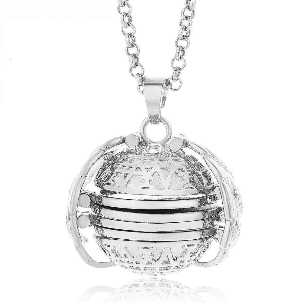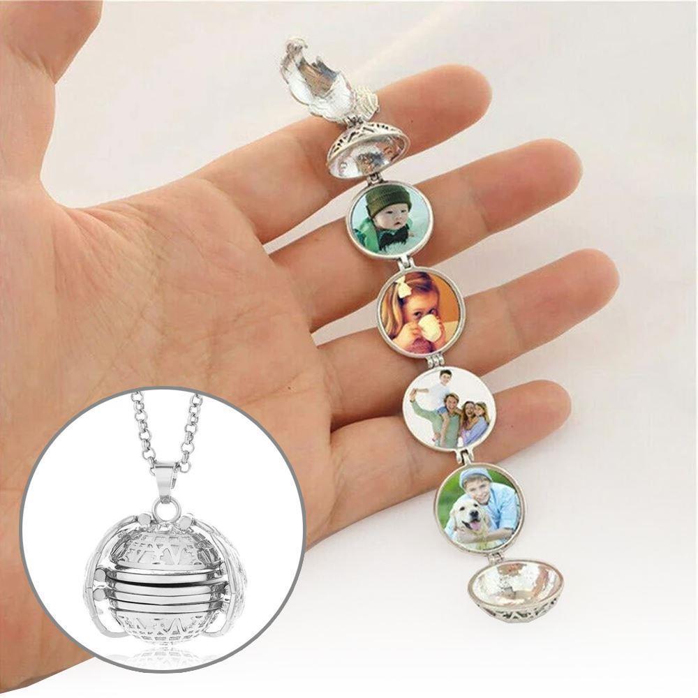 Mějte fotky vašich blízkých stále u sebe. Přívěsek v podobě stříbrné kuličky můžete rozložit a do okének umístit fotografie vašich blízkých. Potom přívěsek zase složte a zacvakněte křidélka. Přívěsek je vhodný pro ženy, které mají rády výraznější šperky. Řetízek je součástí balení.