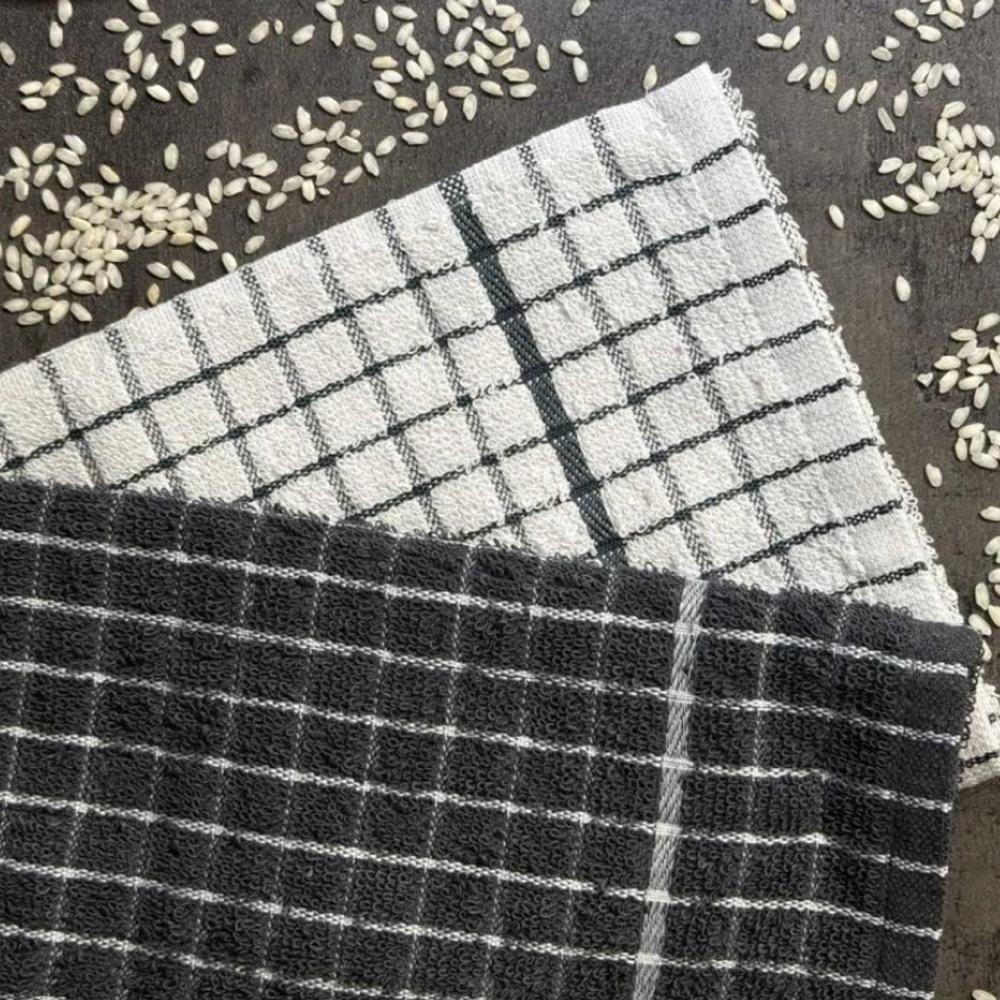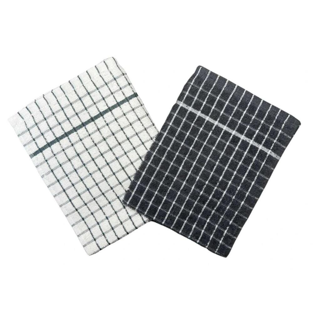 Dopřejte své kuchyni šmrnc s touto sadou dvou kvalitních utěrek v šedobílé barvě. Utěrky ze 100% bavlny vynikají vysokou savostí a jsou mimořádně příjemné na dotek, takže se stanou vaším nepostradatelným pomocníkem při vaření i úklidu.