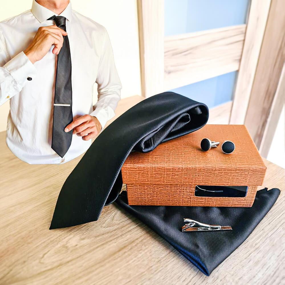 Perfektní pro dárek pro muže Elegantní set kravaty, manžetových knoflíčků a spony Praktické dárkové balení, které zaujme Ideální pro každodenní nošení, do kanceláře i na večerní události