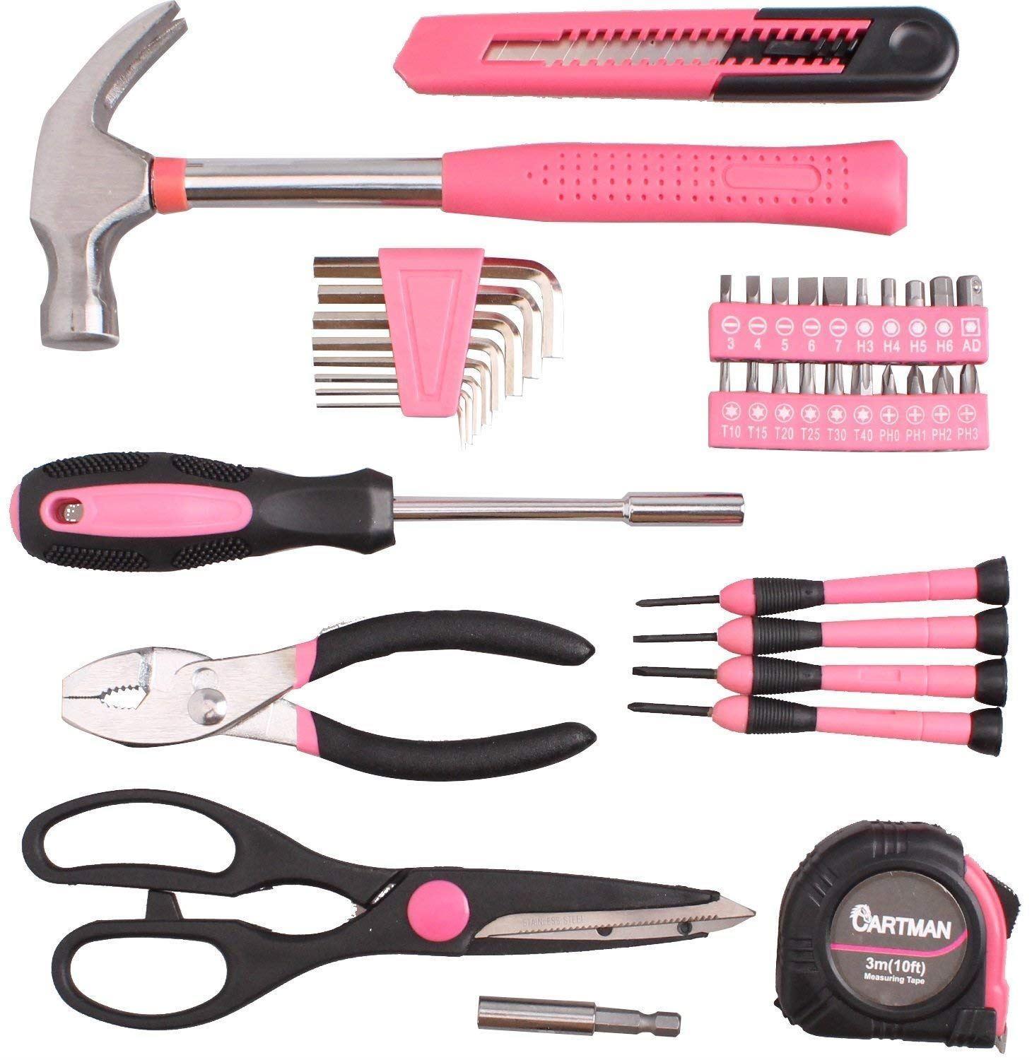 Tímto setem se zavděčíte všem ženám kutilkám. I ženy potřebují čas od času doma něco spravit a nemusí se vždy spoléhat na muže. Po takové samostatné ženy máme tuto šikovnou a pěknou sadu nářadí. Sada obsahuje vše potřebné pro drobné opravy: různé druhy šroubováků, kleště, kladívko, nůž atd. Dohromady zde najdete 39 kusů nářadí.