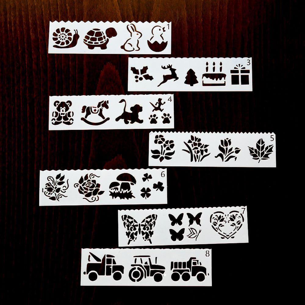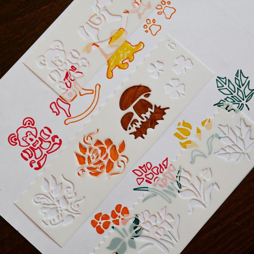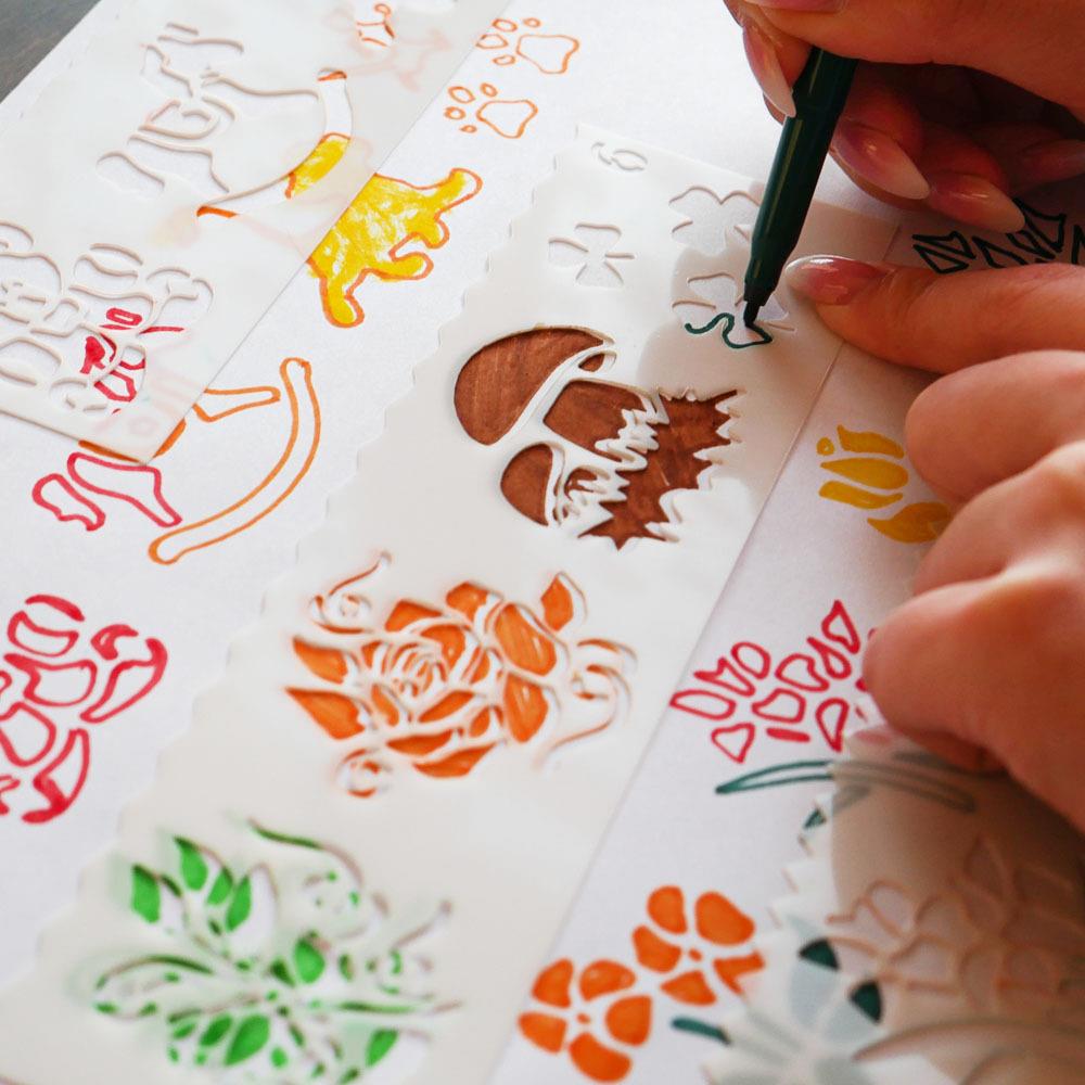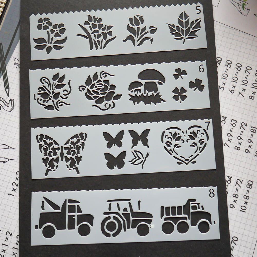 Šablony s různými předlohami nadchnou dětskou kreativitu. Použití je jednoduché - vyberte si jednu ze šablon, která se vám líbí, přiložte ji na papír a tupováním, fixami nebo štětcem s barvou přejeďte přes vzor a po odebrání šablony vyjde perfektní obrázkový vzor.