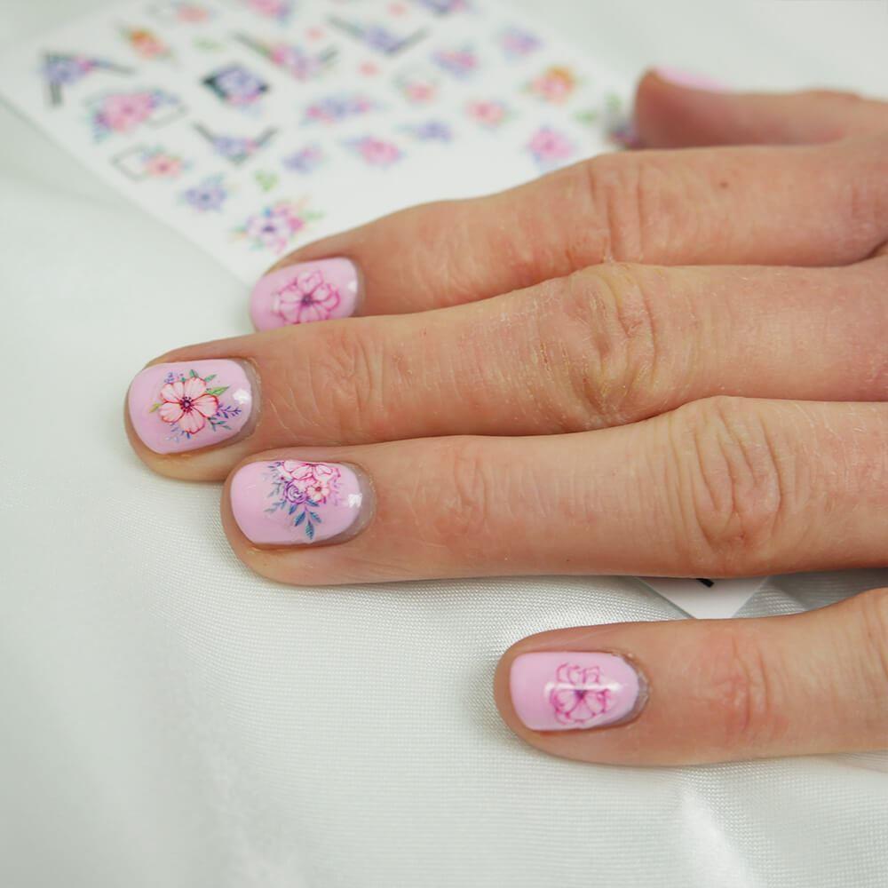 • Po nalepení na nehet stačí přetřít průhledným lakem