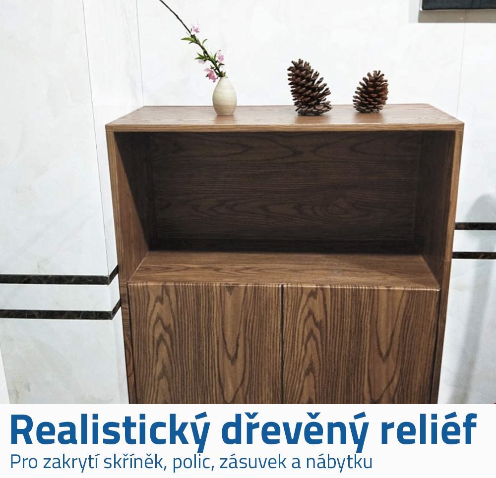 Samolepící fólie oplývá realistickým dřevěným reliéfem. Dodá nový život starému nábytku. Hodí se na lepení na nábytek, zásuvky, skříňky a police.