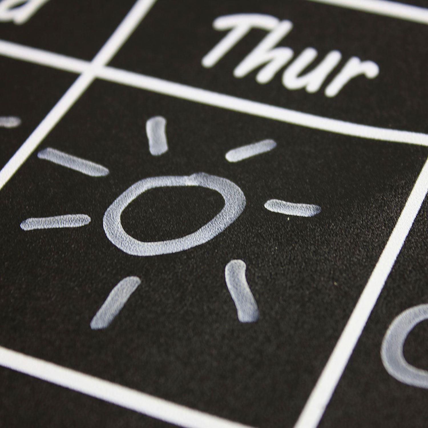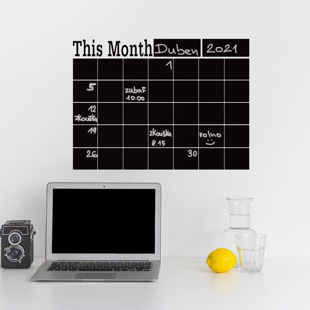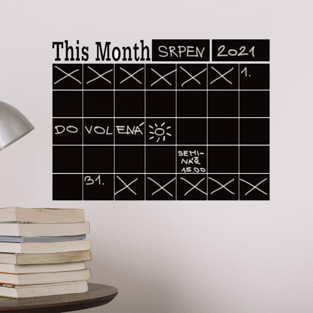 Co si nenapíšete jako by ani nebylo? Přeneste všechny nápady, úkoly nebo poznámky do kalendáře. Samolepící kalendář se bude skvěle vyjímat v kanceláři nebo pracovně, ale lze ho umístit také v kuchyni nebo obývacím pokoji. Díky němu už na nic nezapomenete! Kalendář je zároveň krásný dekorační prvek! Kalendář můžete nalepit kamkoli, na zeď, nábytek, sklo nebo třeba na kachličky. Snadno se na povrch nalepí. Pokud už se vám na daném místě nebude líbit, lehce ho odstraníte a na místě nezůstanou žádné známky toho, že tam nějaký kalendář byl. Jeho velkou výhodou je to, že ho můžete sestavit přesně podle sebe. Jednotlivé čtverečky nejsou spojeny a lze je na povrch lepit libovolně daleko od sebe. Pokud chcete mít ale kalendář rovnoměrně uspořádaný a čtverečky přesně vedle sebe, použijte průhlednou fólii, která je v balení. Kalendář je měsíční a obsahuje 35 čtverečků, které představují jednotlivé dny. Poznámky na kalendář piště křídami. Křídy nejsou součástí balení. Ilustrační video (záběry jsou pouze ilustrační, tento produkt můžete nalepit libovolně):
