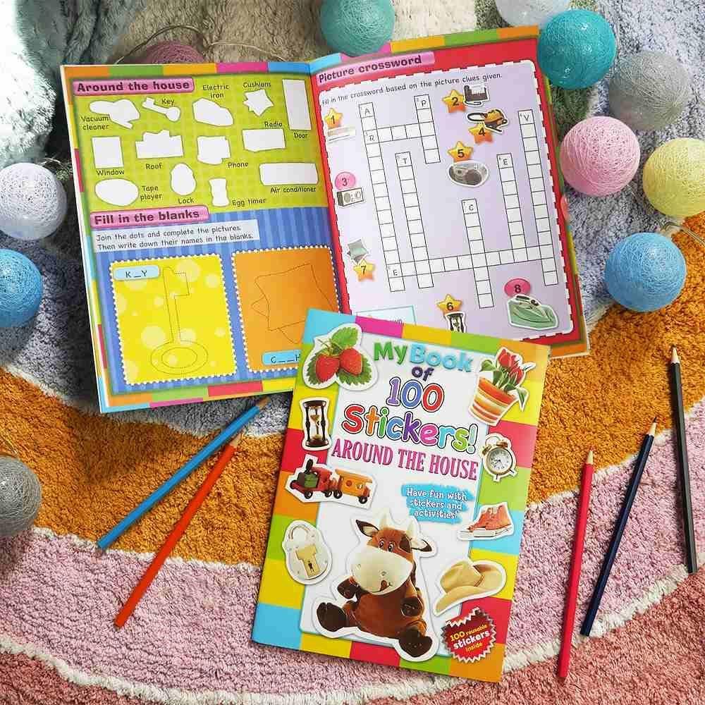 Pracovní sešit s 10 listy, které obsahují křížovky, hádanky a doplňovačky se samolepkami.