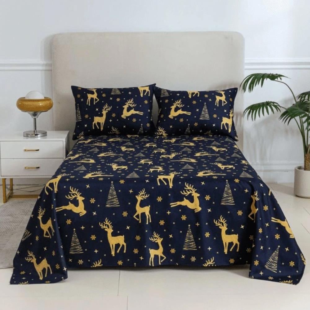 Set vánočního prostěradla 200 x 240 cm a 2 povlaků na polštář 50 x 70 cm