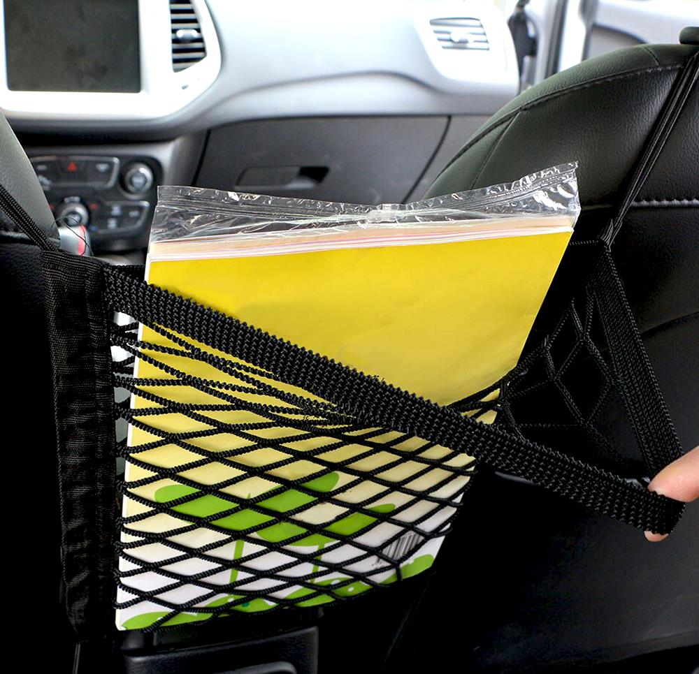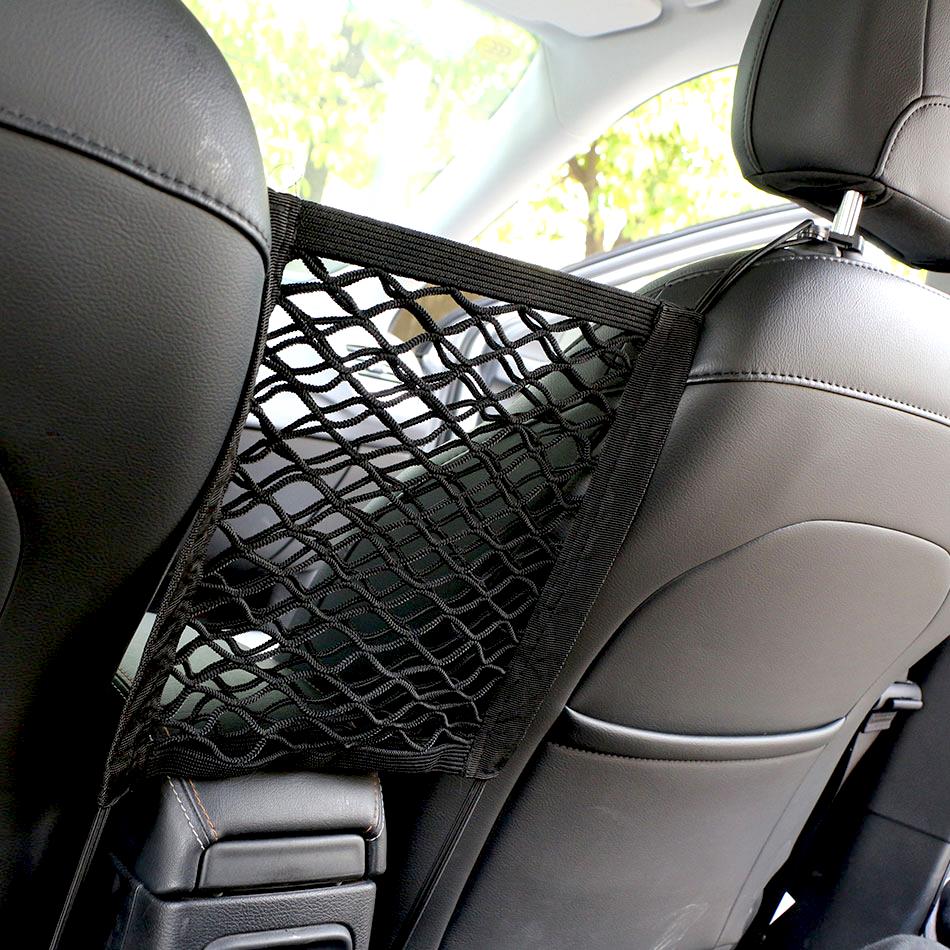 Univerzální síť jednoduše aplikujete mezi přední sedadla. Upevníte ji pomocí plastových háčků za tyčky opěrek a konstrukci sedadel. Síť lze upevnit také na zadní sedadlo. Plní funkci úložného prostoru na drobnosti: láhve, povinnou výbavu či kapesníčky. Síť ale lze i použít jako zátarasu pro pejsky, aby vám nepřekáželi při řízení. Zajistíte si tak bezpečnou a plynulou jízdu bez nehod a rozptýlení.