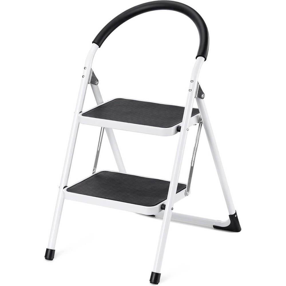Skládací schůdky se dvěma stupni jsou skvělým společníkem pro každodenní činnosti doma, v kanceláři i v dílně. Potřebujete-li dosáhnout na vysokou poličku, vyměnit světlo či provést rychlou opravu, tyto schůdky vám poskytnou bezpečí a pohodlí při jejich používání.Díky kovové konstrukci jsou schůdky pevné, zatímco protiskluzové schody a gumové nožky poskytují vynikající stabilitu. Ergonomické madlo zajišťuje podporu při stoupaní a sestupování.