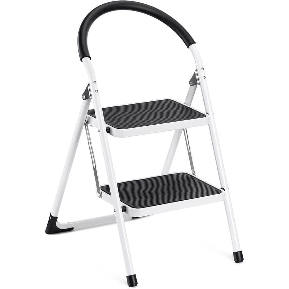 Skládací schůdky se dvěma stupni jsou skvělým společníkem pro každodenní činnosti doma, v kanceláři i v dílně. Potřebujete-li dosáhnout na vysokou poličku, vyměnit světlo či provést rychlou opravu, tyto schůdky vám poskytnou bezpečí a pohodlí při jejich používání.