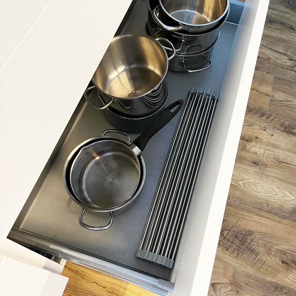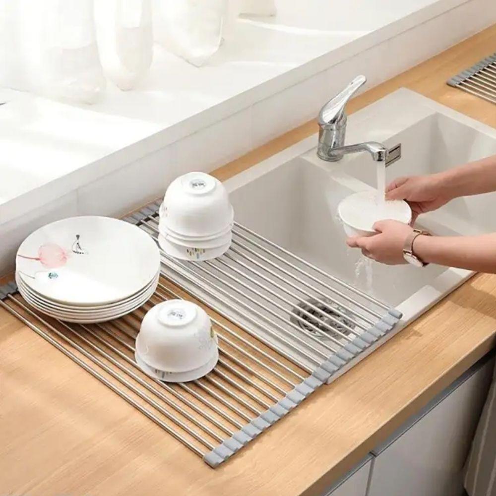 Skládací odkapávač na nádobí se stane nezbytností v kuchyni. Pokud máte v kuchyni málo místo bude tím pravým. Odkapávač snadno složíte a zase rozložíte. Pokud ho zrovna nebudete chtít mít na lince, složíte ho do ruličky a můžete ho umístit kamkoliv. Nezabere skoro žádné místo a budete ho mít tak při ruce. Odkapávač je velice stabilní. Výhoda tohoto odkapávače oproti klasickým plastovým odkapávačům je taková, že voda bude z nádobí stékat přímo do dřezu a nebude se nikde držet a třeba plesnivět. Odkapávač nemusíte ani nijak výrazně čistit, jelikož tam voda nikde nezůstává a nedrží se.