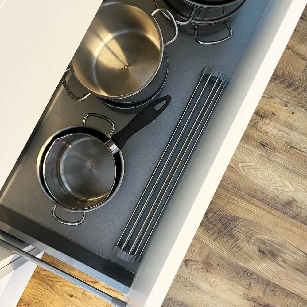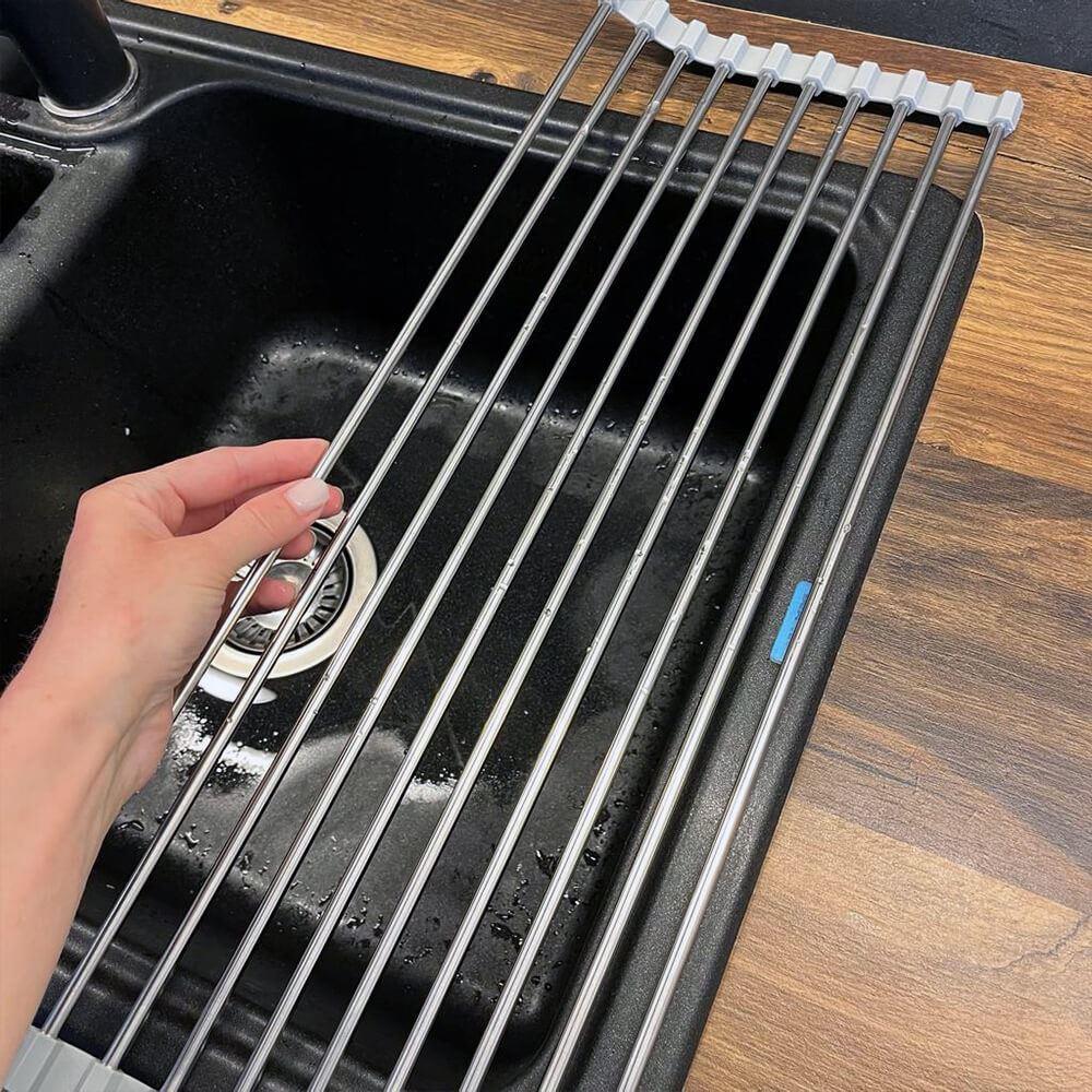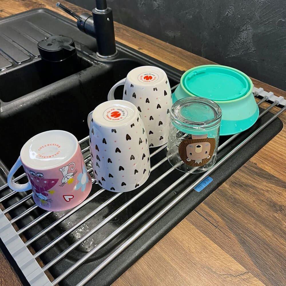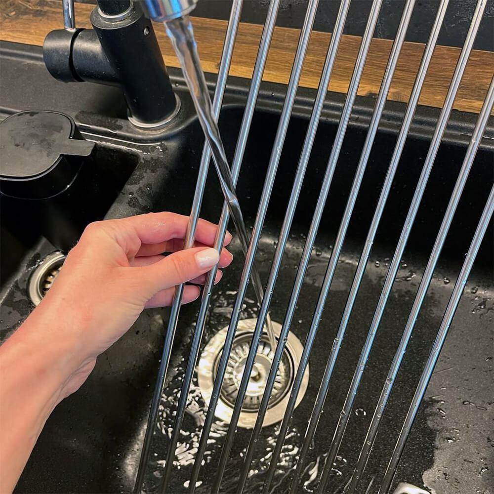 Skládací odkapávač na nádobí se stane nezbytností v kuchyni. Pokud máte v kuchyni málo místo bude tím pravým. Odkapávač snadno složíte a zase rozložíte. Pokud ho zrovna nebudete chtít mít na lince, složíte ho do ruličky a můžete ho umístit kamkoliv. Nezabere skoro žádné místo a budete ho mít tak při ruce. Odkapávač je velice stabilní. Výhoda tohoto odkapávače oproti klasickým plastovým odkapávačům je taková, že voda bude z nádobí stékat přímo do dřezu a nebude se nikde držet a třeba plesnivět. Odkapávač nemusíte ani nijak výrazně čistit, jelikož tam voda nikde nezůstává a nedrží se.Odkapávač se může používat dále na odkapávání zeleniny nebo ovoce. Ale také je možné ho využívat jako mřížku pod rozpálený hrnec nebo pánvičku.