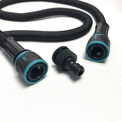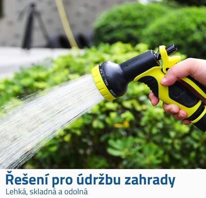 Profi hadice je vybavena oproti klasické hadici odolnější vrstvou tkaniny a pistolí s 9 stupni rozprašování. Koncovky hadice jsou plastové.
