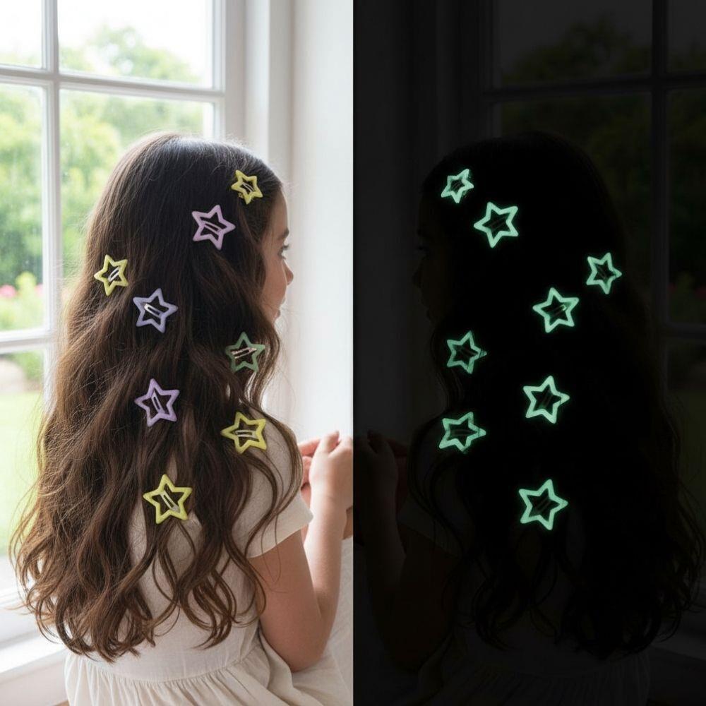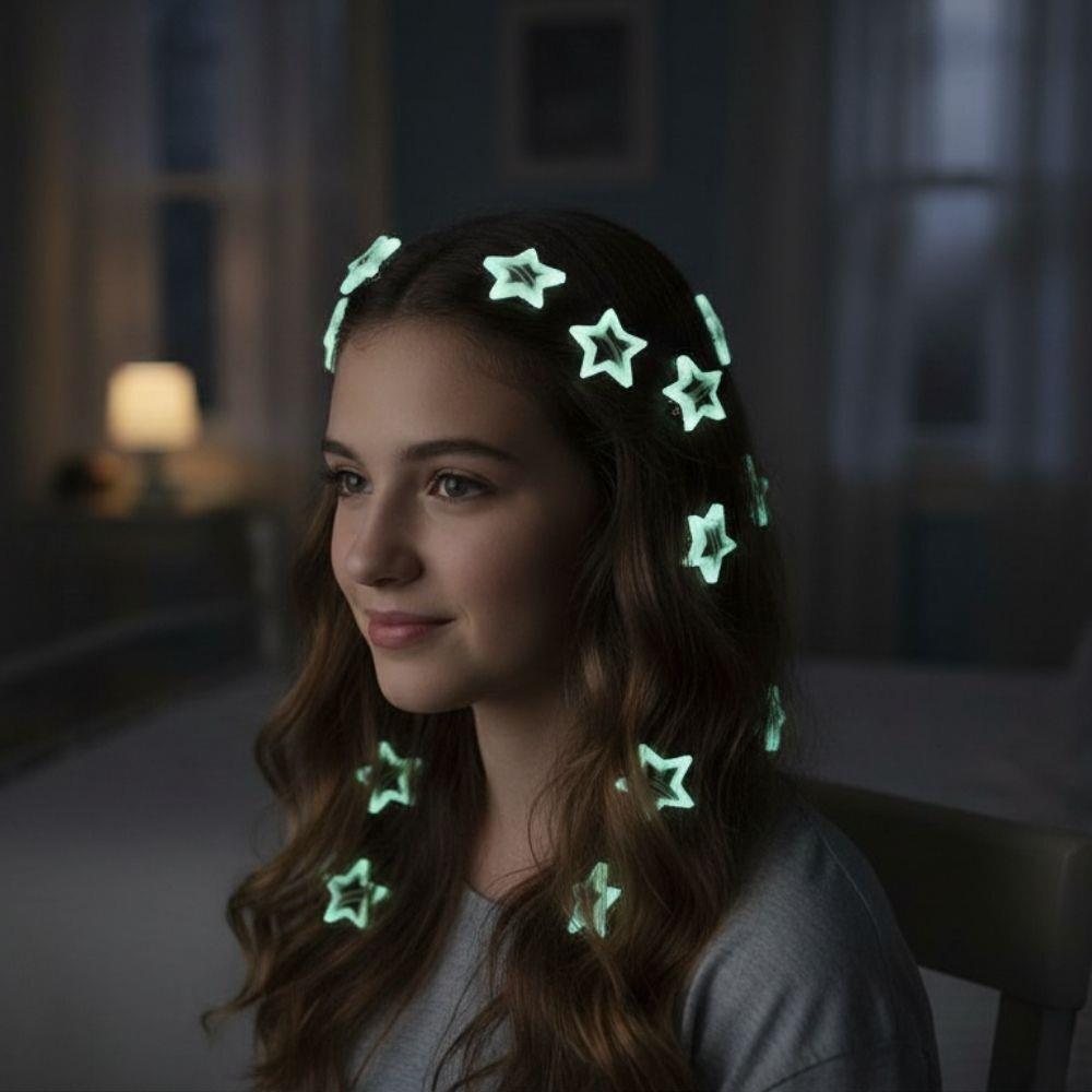 Dejte svému účesu špetku kouzla! Tyto sponky nejsou jen praktickým pomocníkem – ve tmě doslova zazáří. Díky fluorescenčnímu efektu se po nasvícení promění ve světélkující ozdobu, která zaručeně upoutá pozornost.Vyrazte na oslavu, párty či večírek s nápaditým doplňkem.