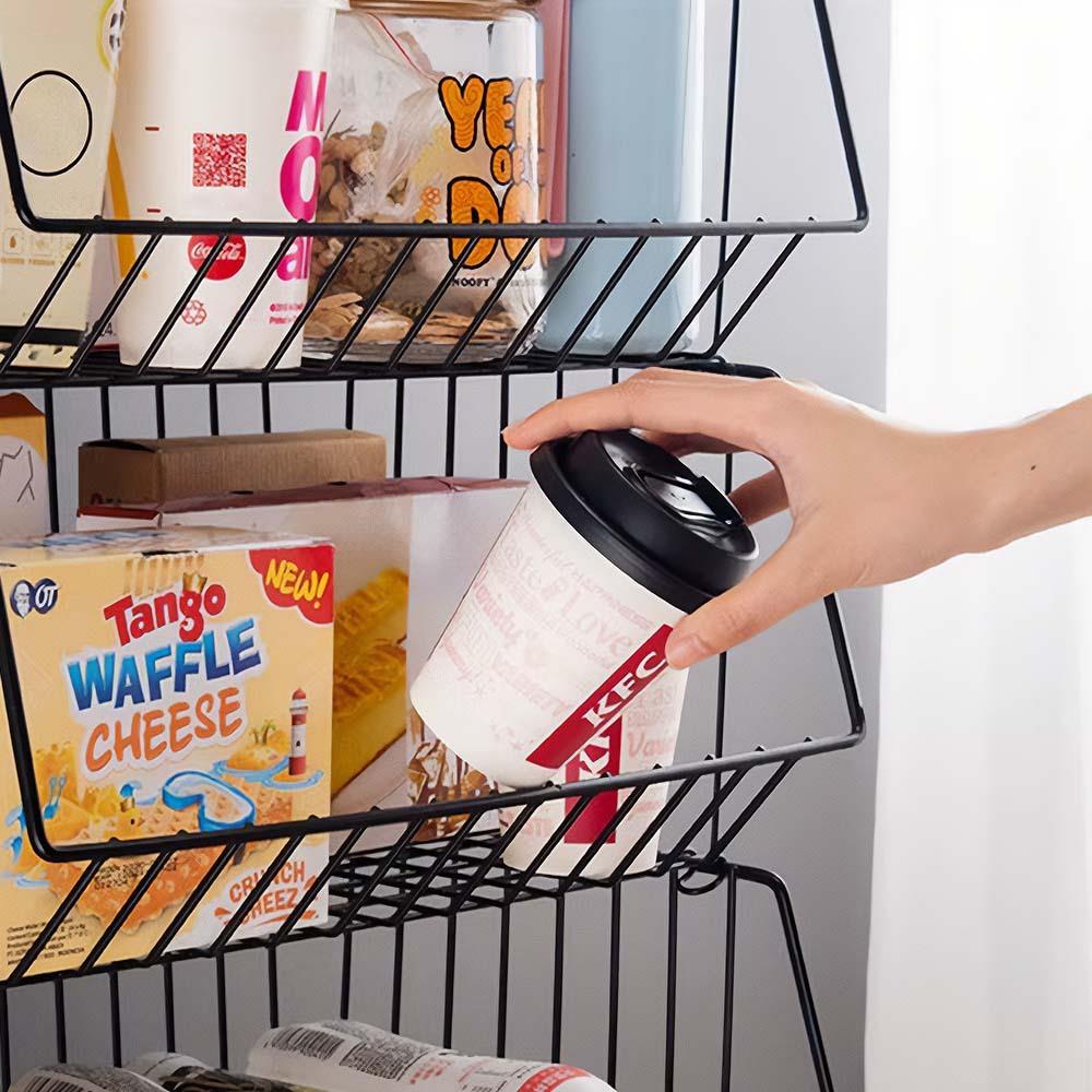 Stohovatelný kovový organizér se třemi patry nabízí univerzální využití v domácnosti. Je stabilní, odolný a šetří místo, ať už v kuchyni, koupelně nebo spíži.