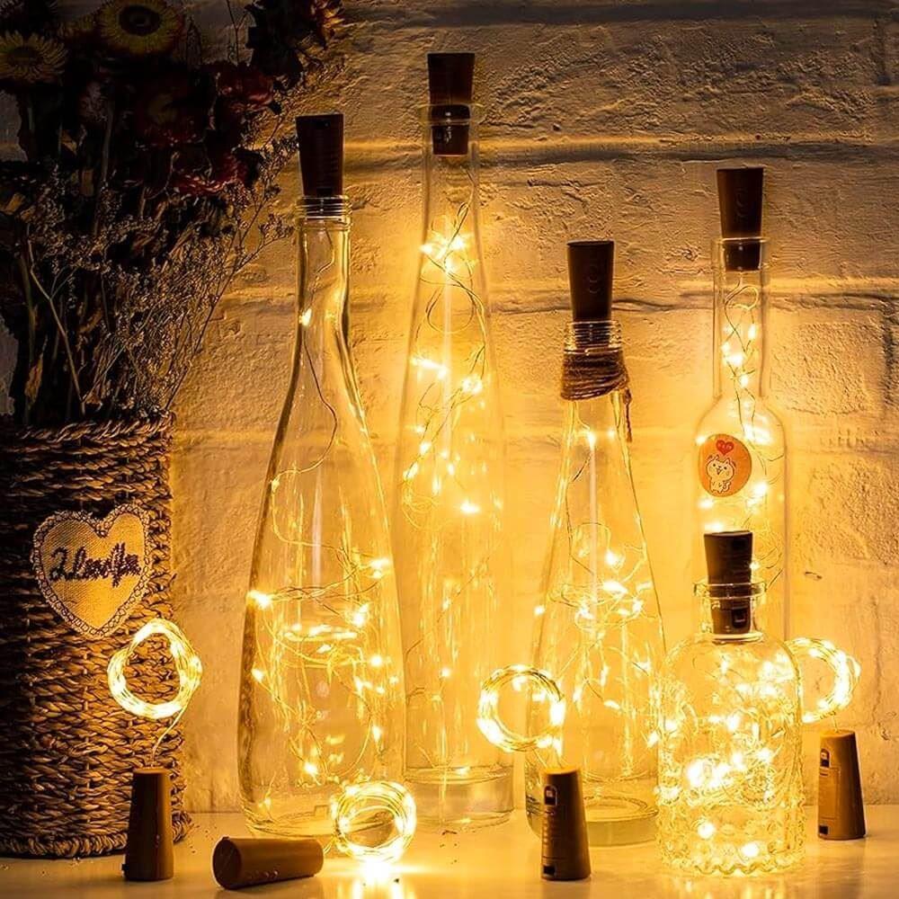 Světelný řetěz je nevšední bytová dekorace, která však i nevšedně ozdobí svatební místo. Řetěz je totiž zajímavý tím, že součástí je imitace korku, kterým zašpuntujete jakoukoliv skleněnou nebo průhlednou lahev. Do lahve zkroutíte 2 m dlouhý světelný řetěz a na korku zmáčknete tlačítko ON pro svícení.