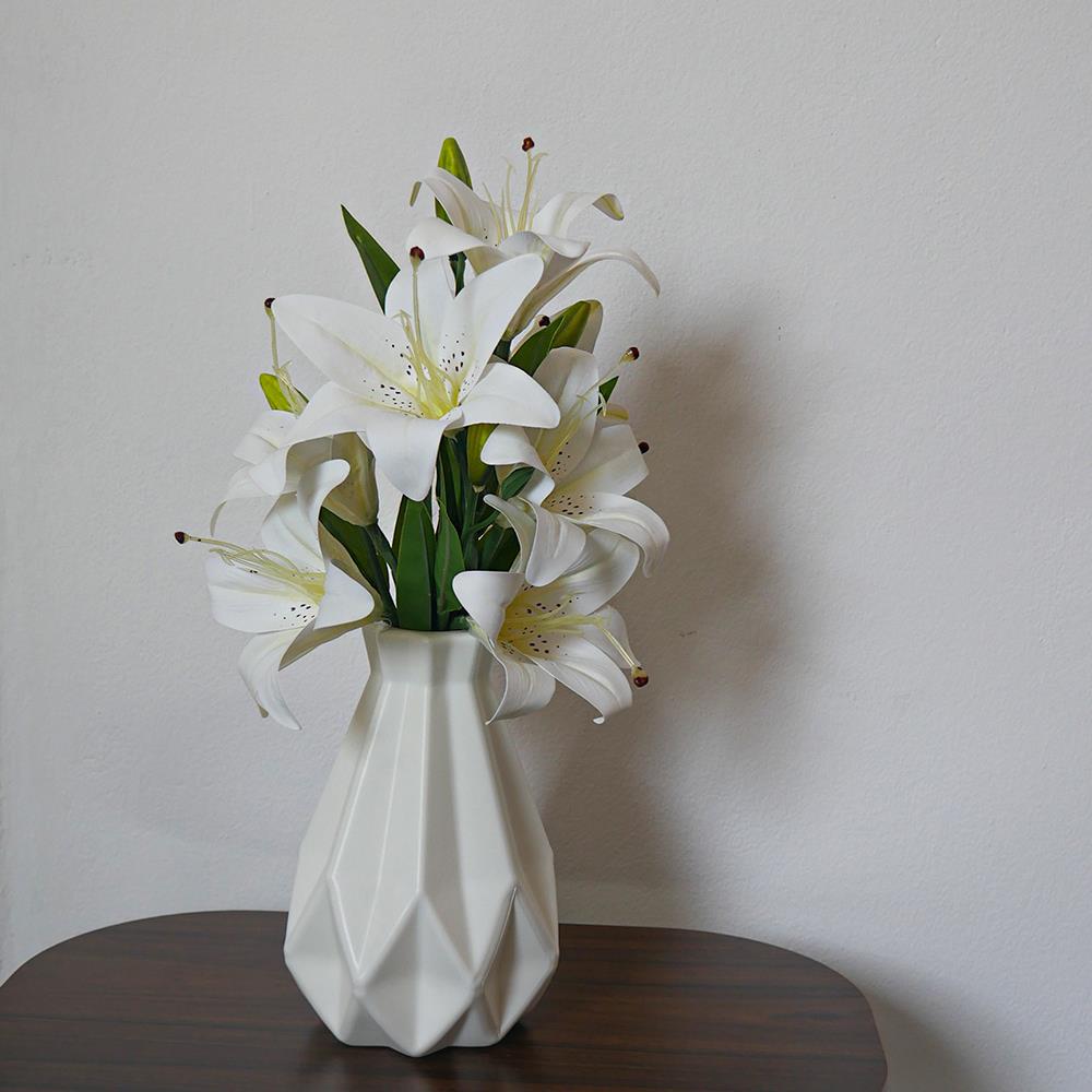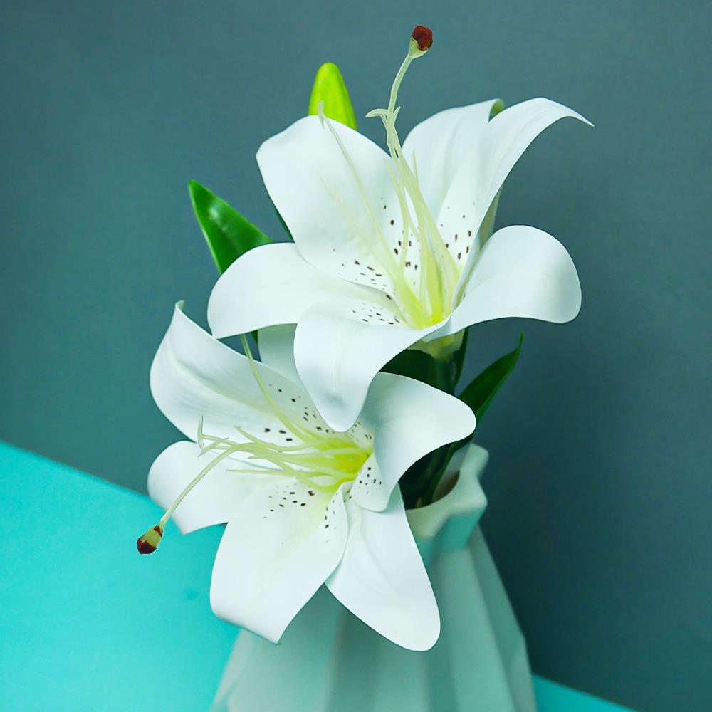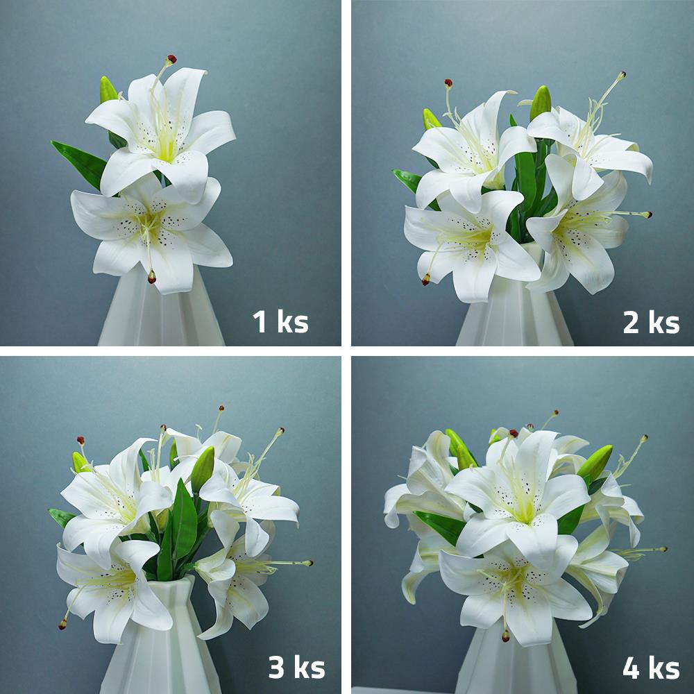 Umělá kytice lilií je elegantní doplněk, který rozzáří každý interiér. Realistický vzhled květů zaujme i při bližším pohledu. Kytice neztrácí barvu ani tvar, takže bude krásná dlouhé roky. Pro bohatší efekt doporučujeme vzít 3 a více kusů lilií. Můžete ji využít jako dekoraci do obývacího pokoje, ložnice nebo na slavnostní stůl. Užijte si krásu bez kompromisů. Lilie zůstávají stále stejně dokonalé.