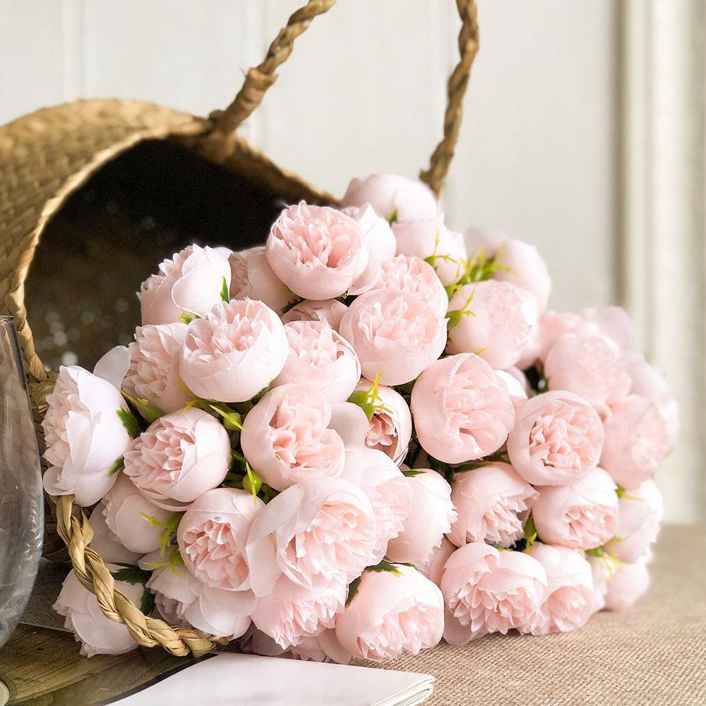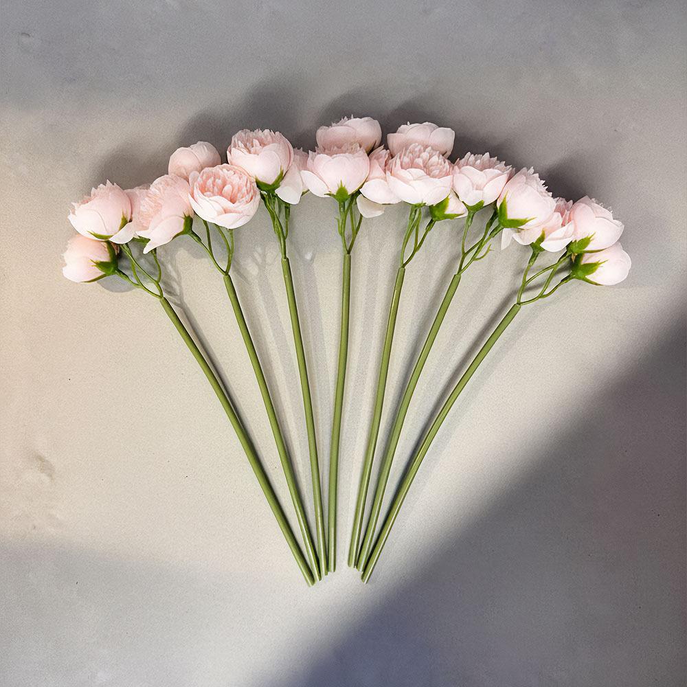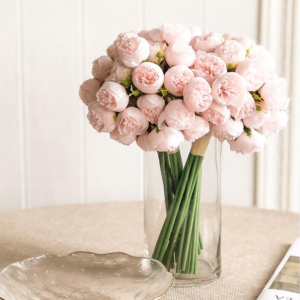 Bohatá kytice 9 jemně růžových pivoněk rozzáří interiér a dodá mu eleganci. Nevadne, nepotřebuje péči a hodí se do vázy i na slavnostní výzdobu.