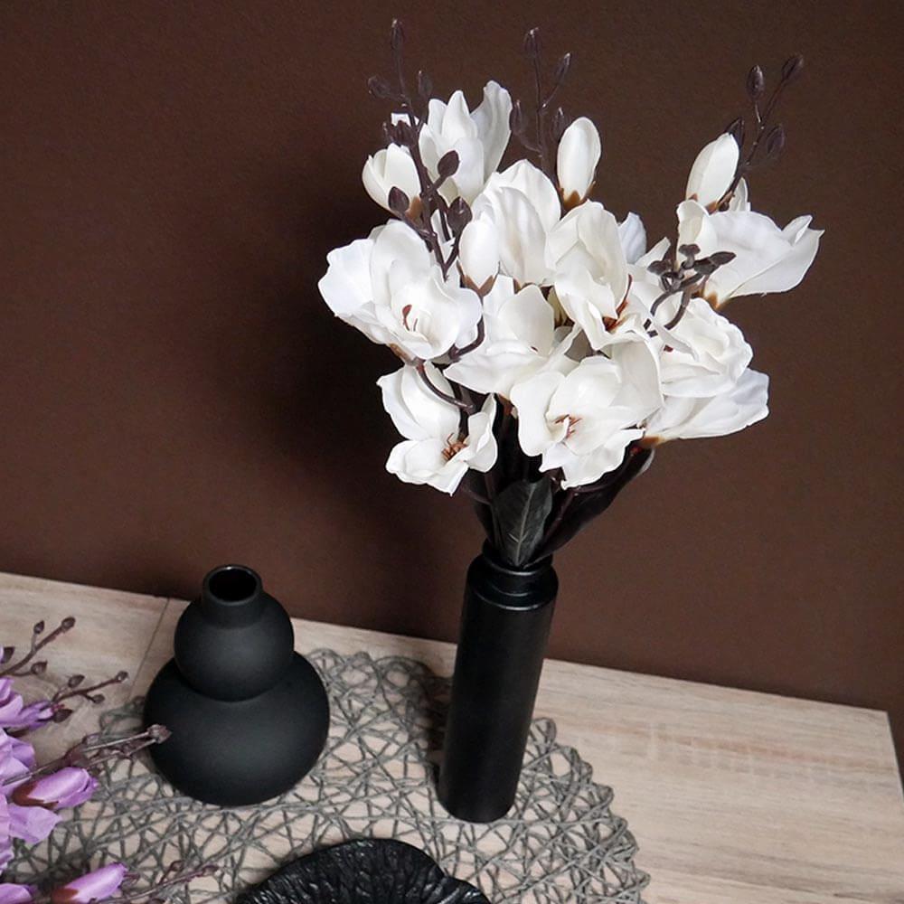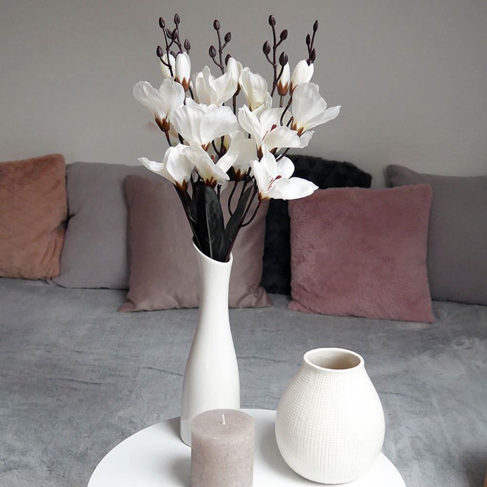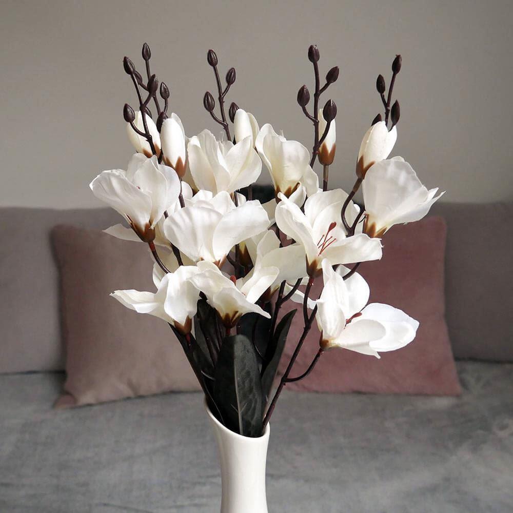 Velmi decentní květina, která vypadá jako živá. Budete si k ní chtít přivonět! Její krásně barevné květy přispívají k iluzi, že se jedná o skutečné živé květy. Díky naší nabídce si můžete vybrat z různých barev, výzdobu si tak můžete kdykoliv obměnit a vytvořit tak nový vzhled. Ve váze ji můžete doplnit dalšími větvičkami nebo kytičkami z naší nabídky.