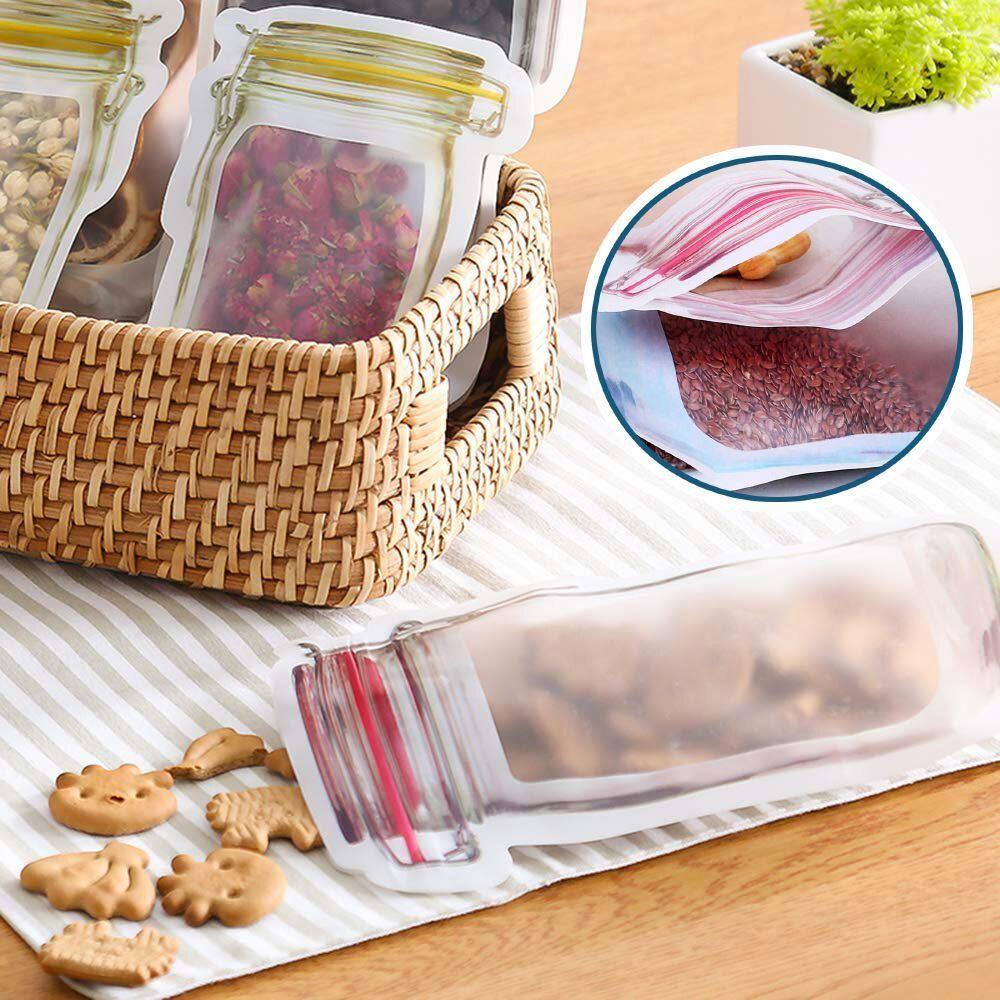 Skvělé řešení, jak správně uchovávat potraviny, tak aby byly i po otevření jako čerstvé! Zavírací sáček je vzduchotěsný a odolný proti prosáknutí. Zavírací sáček je skladný a dokáže ušetřit spoustu místa. Sáček lze také využívat například jako sáček na svačinu nebo sušenky. Ušetří spoustu místa. Vhodné například na rýži, těstoviny, koření, ale také sušenky, bonbóny nebo třeba oříšky. skvělé pro vaše šetření potravin, klasifikace a skladování jako občerstvení, bonbóny, koření.
