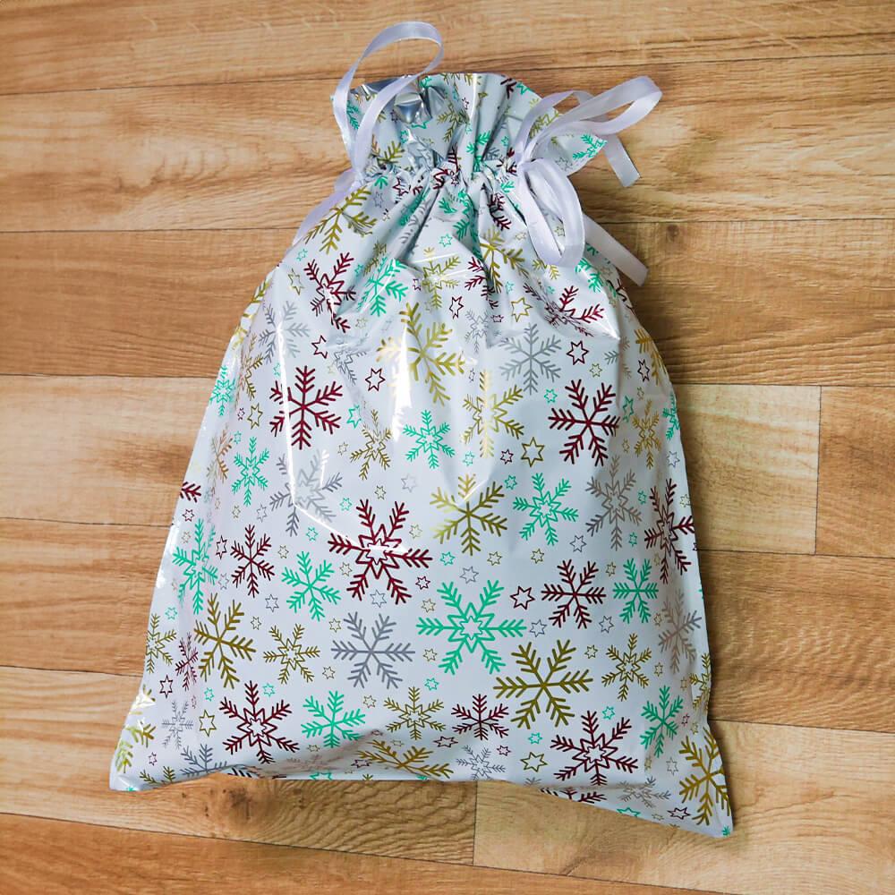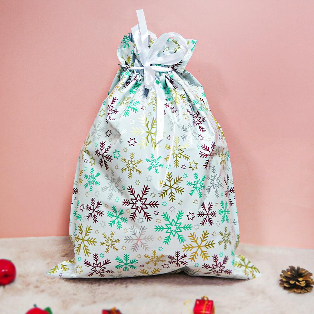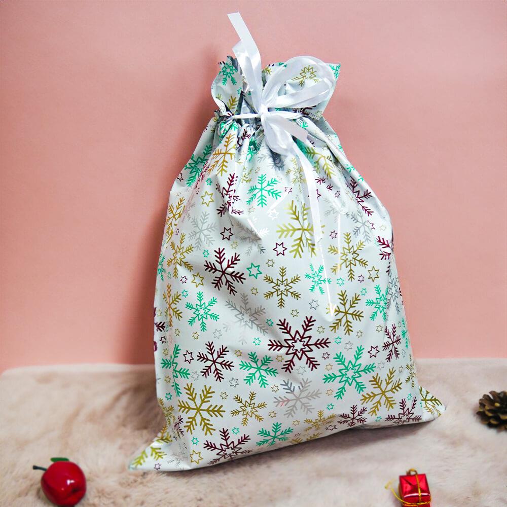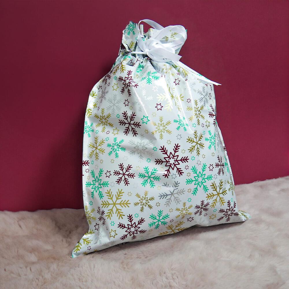 Obrázek z Vánoční dárkový balicí sáček se šňůrkou - 51x39 cm - sněhové vločky