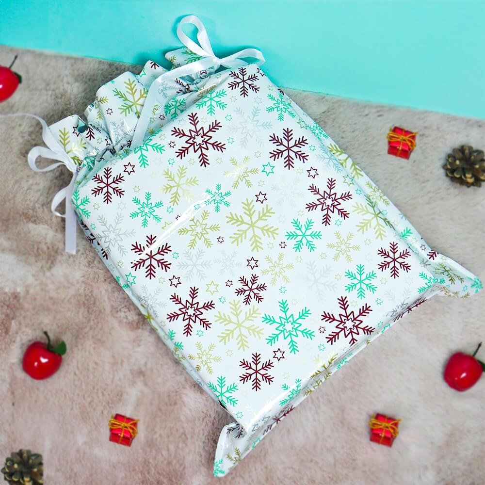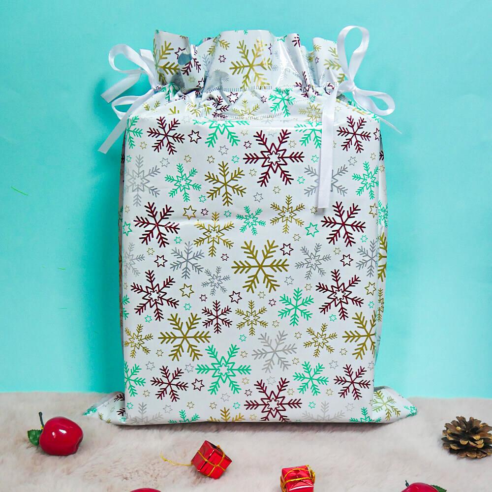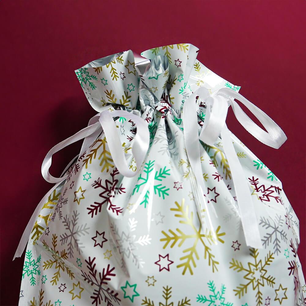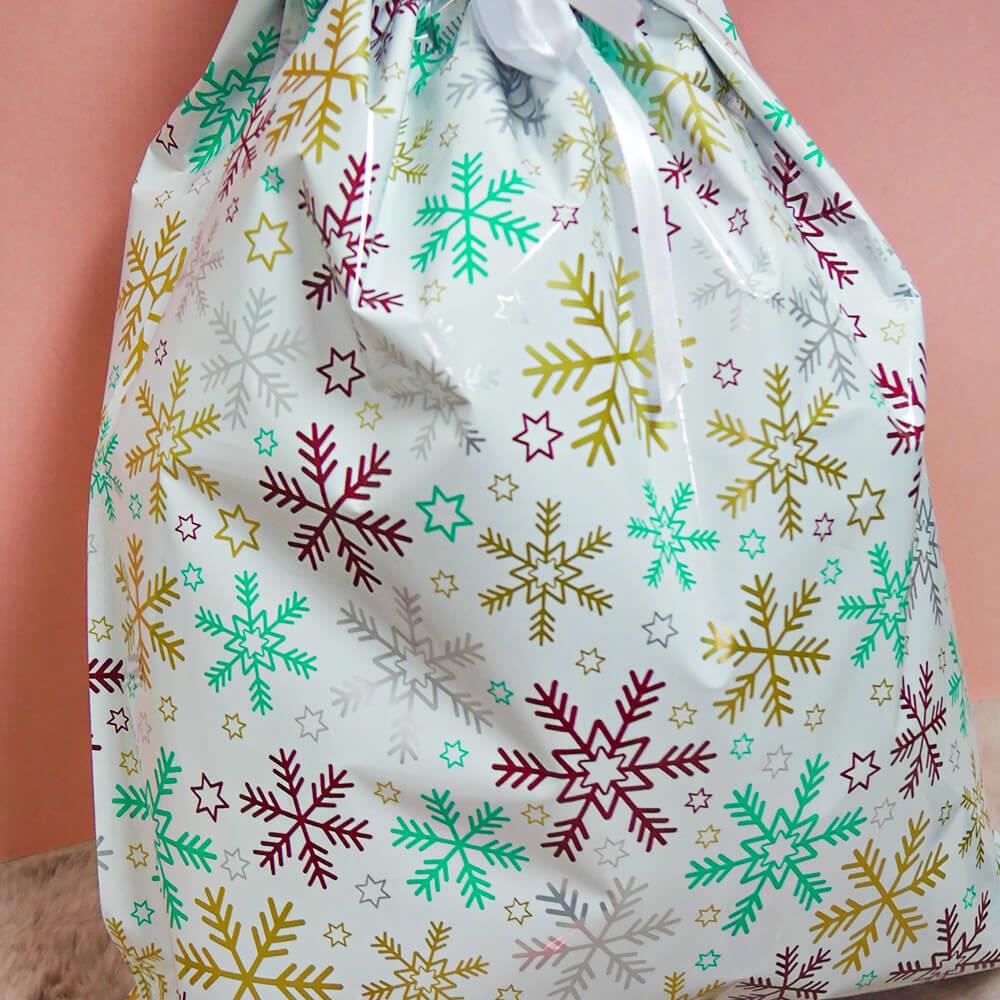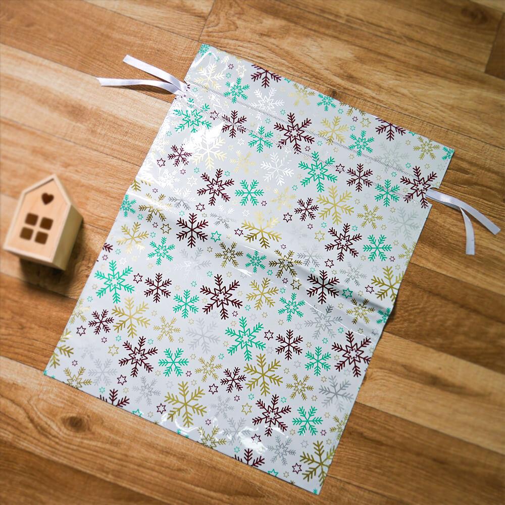 Obrázek z Vánoční dárkový balicí sáček se šňůrkou - 51x39 cm - sněhové vločky
