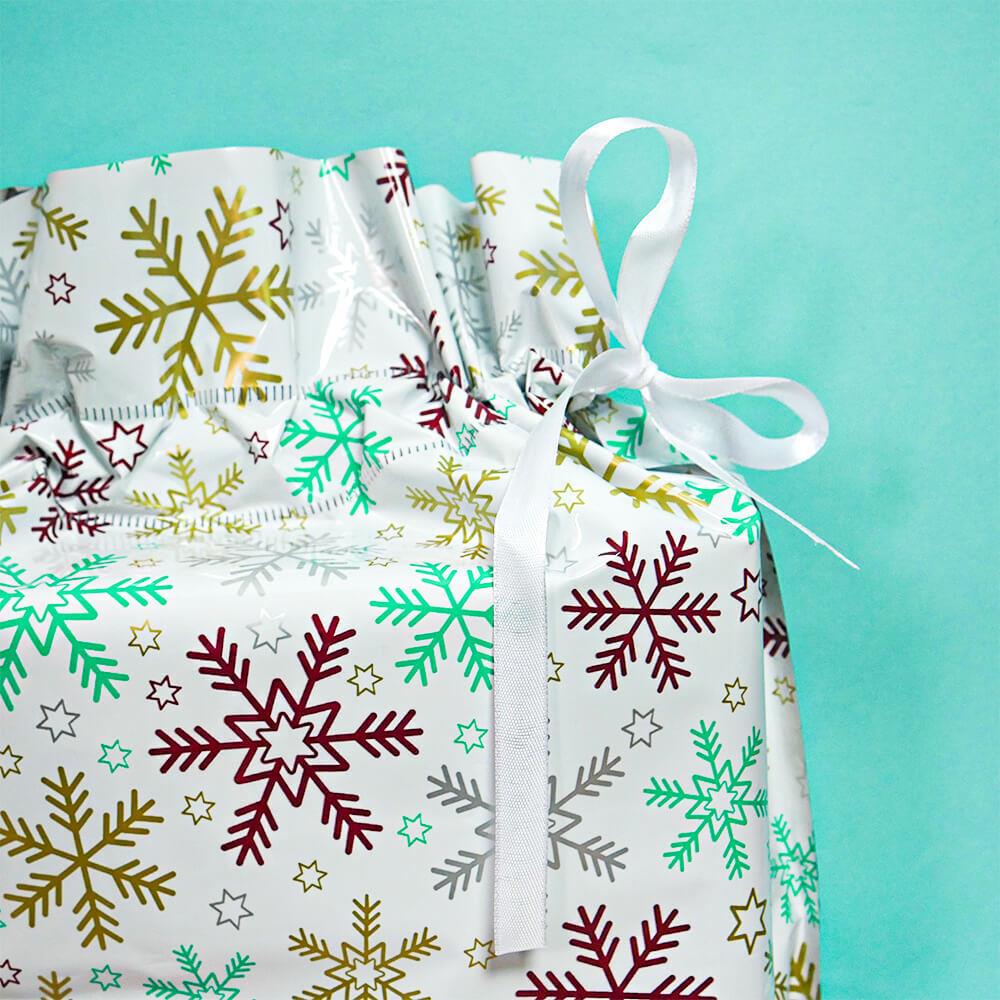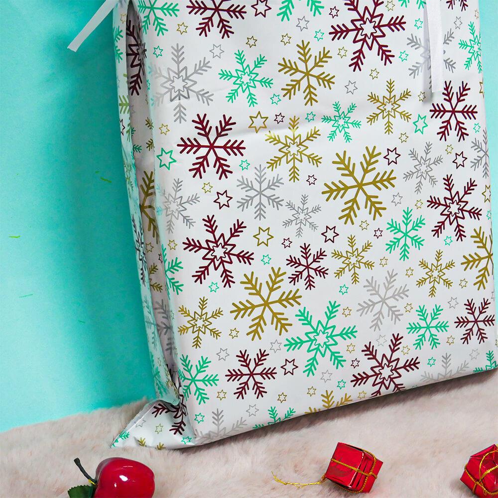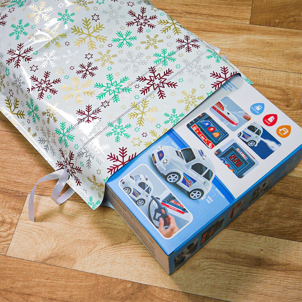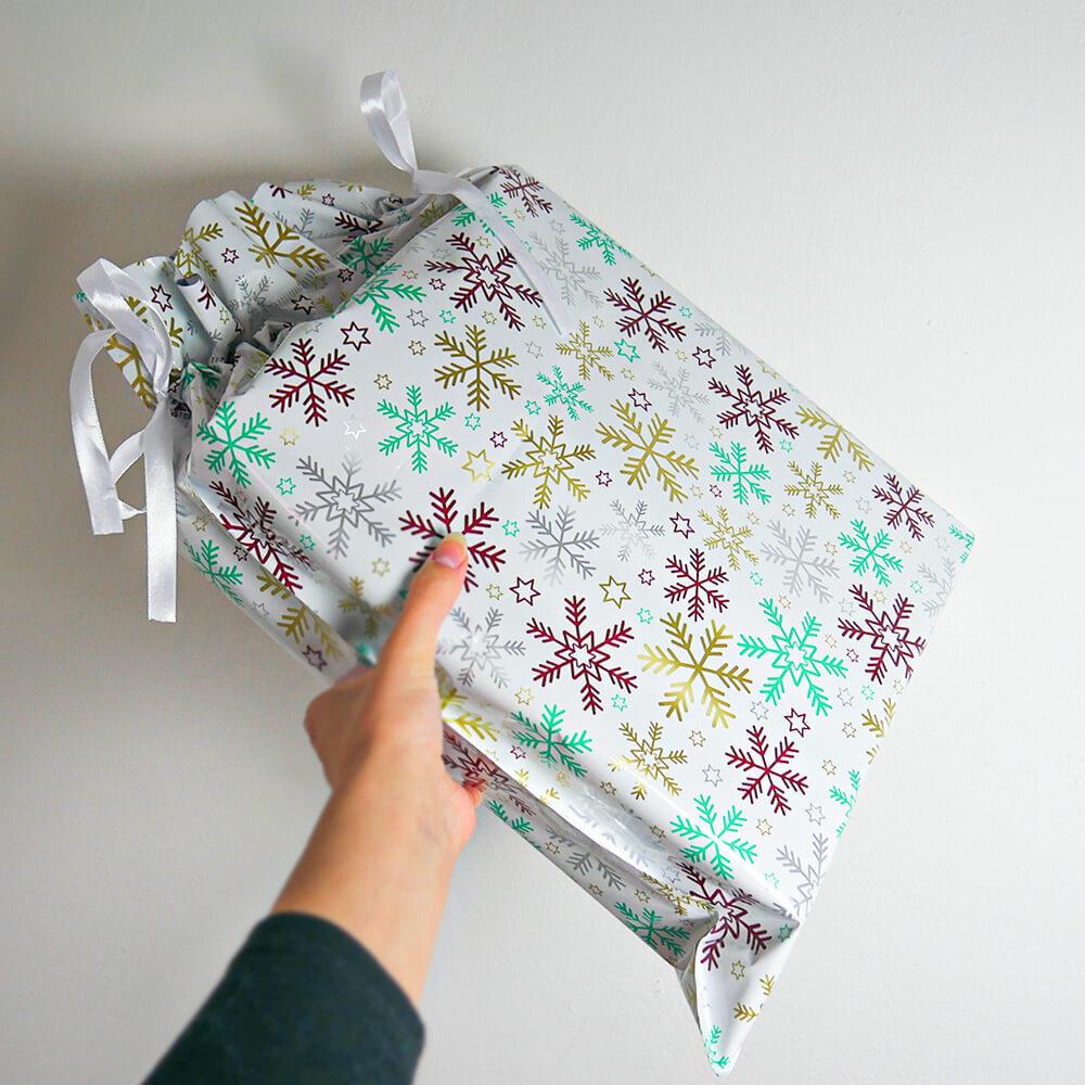 Obrázek z Vánoční dárkový balicí sáček se šňůrkou - 51x39 cm - sněhové vločky