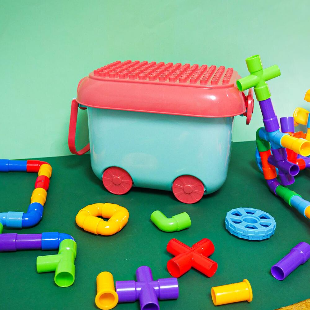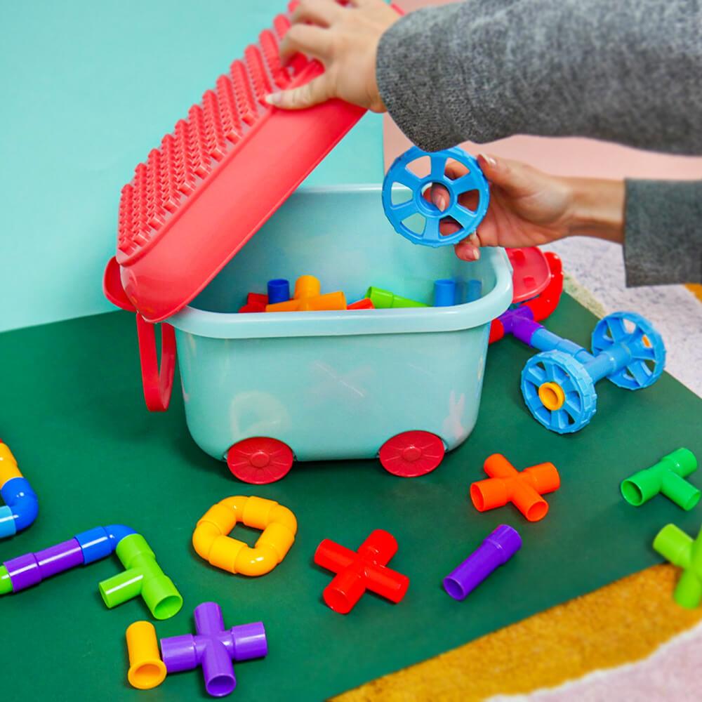 Vozík se stavebnicí pro děti je ideální hračkou, která spojuje zábavu i praktičnost v jednom. Velké dílky stavebnice umožňují snadné uchopení i do nejmenších ručiček. Díky obrázkovým inspiracím se děti naučí postupovat krok za krokem, ale mohou se pustit i do vlastních originálních výtvorů. Vozík na kolečkách slouží jako praktický úložný prostor. Stavění rozvíjí jemnou motoriku, trpělivost a schopnost plánování. Děti se naučí vytvářet nejrůznější autíčka, zvířátka či roboty, což podněcuje jejich fantazii. Skvěle se hodí i pro hraní s kamarády nebo sourozenci, kdy se učí spolupráci a sdílení