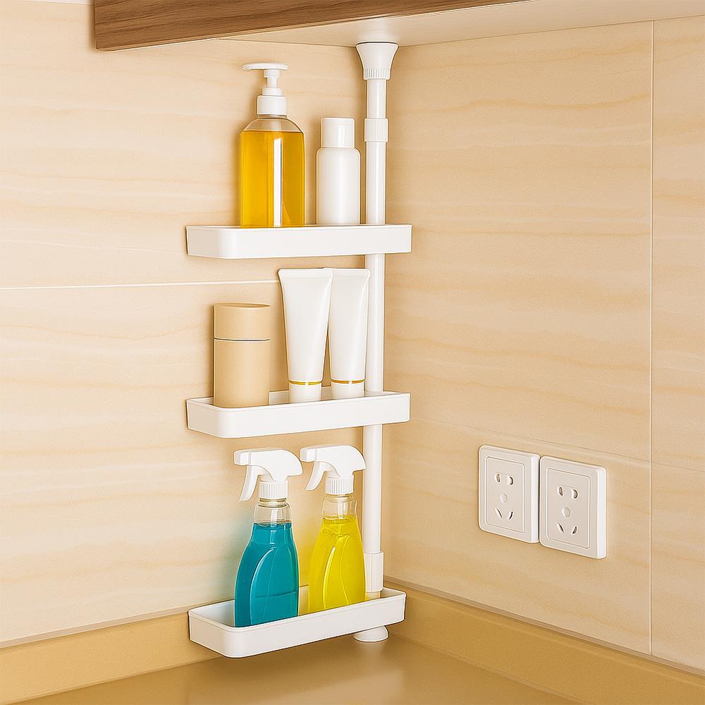 Maximalizujte efektivitu úložného prostoru i v těch nejmenších zákoutích! S našimi nastavitelnými 3patrovými policemi využijete každý centimetr – ať už na pracovní desce v kuchyni, v koupelně nebo ve spíži. Výška polic a rozestupy mezi nimi je nastavitelná. Teleskopický systém umožňuje jejich pevné uchycení mezi pracovní deskou a skříňkou. Instalaci zvládnete rychle bez nářadí, bez vrtání a jakéhokoliv poškození interiéru.