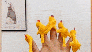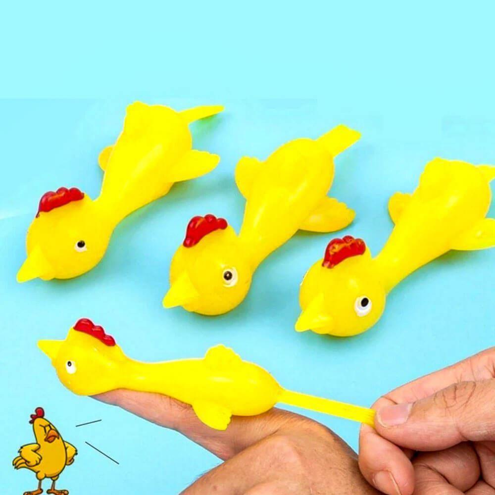 Zažijte srandu s létajícímí kuřaty! Použití je jednoduché! Stačí si na vršek prstu navléknout kuře a následně ho vystřelit na zeď či sklo. Hračka zůstane přichycena na ploše, na kterou narazí. Pokud kuře přestane lepit stačí opláchnout, nechat uschnout a lze opět použít.