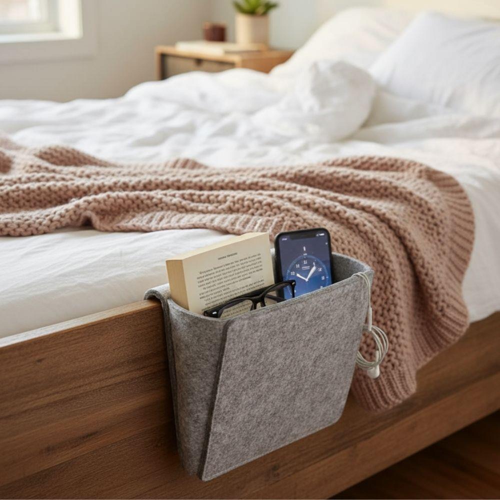 Ušetřete místo a pořiďte si místo nočního stolku tento organizér na postel!